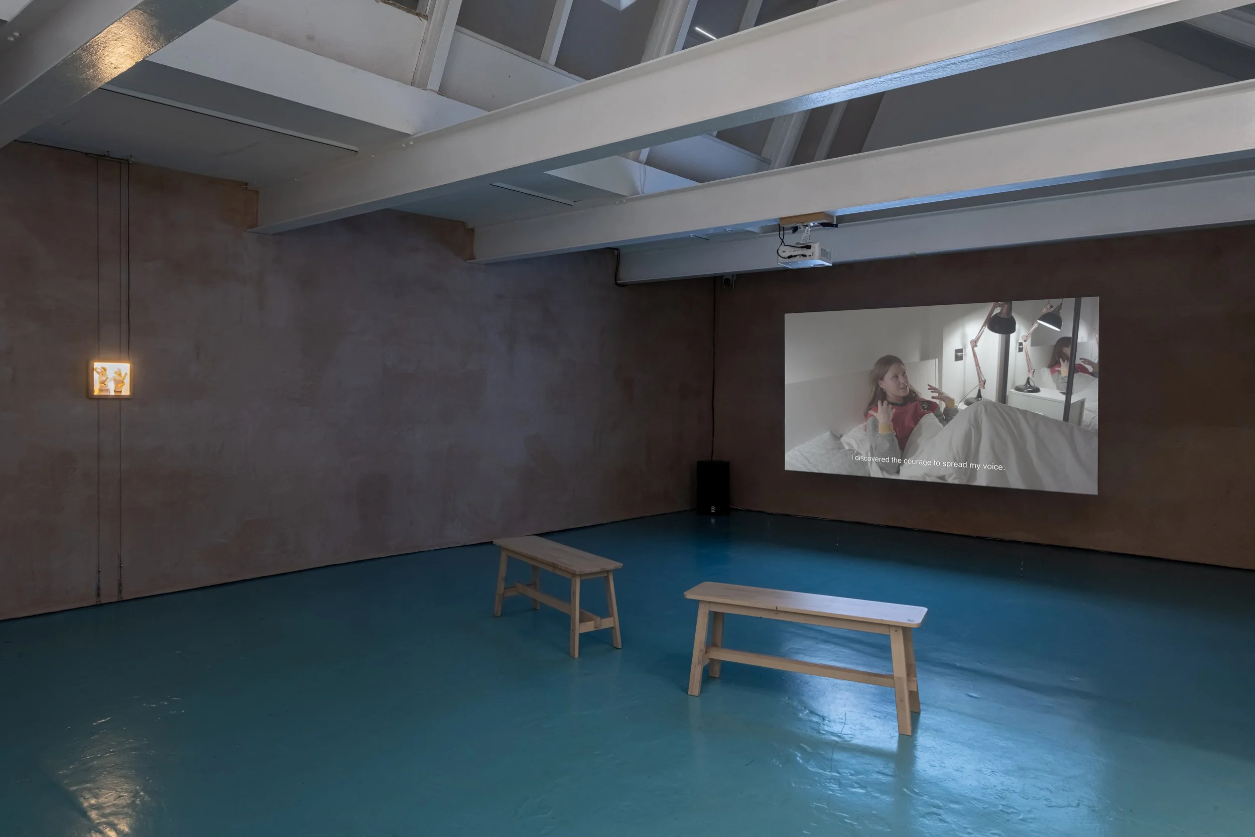An installation centering around new video work: a subtly absurd narrative piece of autofiction that tracks an inner monologue as it works through different stages of acceptance of having to undergo surgery, while reflecting on the world around them.